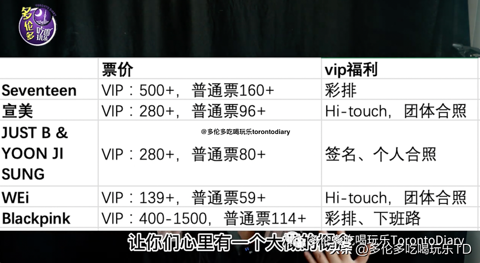 一般kpop演唱会门票,要看这个组合的人气和vip福利决定的。例如:今年某个五代团的vip门票,就200多加币,但是blackpink的vip门票可以达到400,600和1500。我们把今年的KPOP演唱会的VIP门票票价和福利,总结给大家看一下。