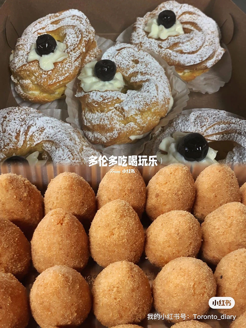 除了cannoli之外,这里的意大利甜品Zeppole也很受欢迎。因为Zeppole 全部是从头开始手工制作,所以这里必须从 6 件起订购,而且提前 2 天订购。在意大利,为了庆祝父亲节,传统习俗是要吃Zeppole。Zeppole可以说是一种油炸过后的泡芙,其起源来自于拿波里,标准的原始尺寸是直径约为10公分大小,其外观与泡芙相似。面团通常是用油,蛋液以及水混合而成的面团油炸而成的,并在内馅与外观上抹上满满的卡士达酱,最后再放上一颗酒渍樱桃在顶上,就完成了。但是难得在多伦多能吃到,所以可以一试。