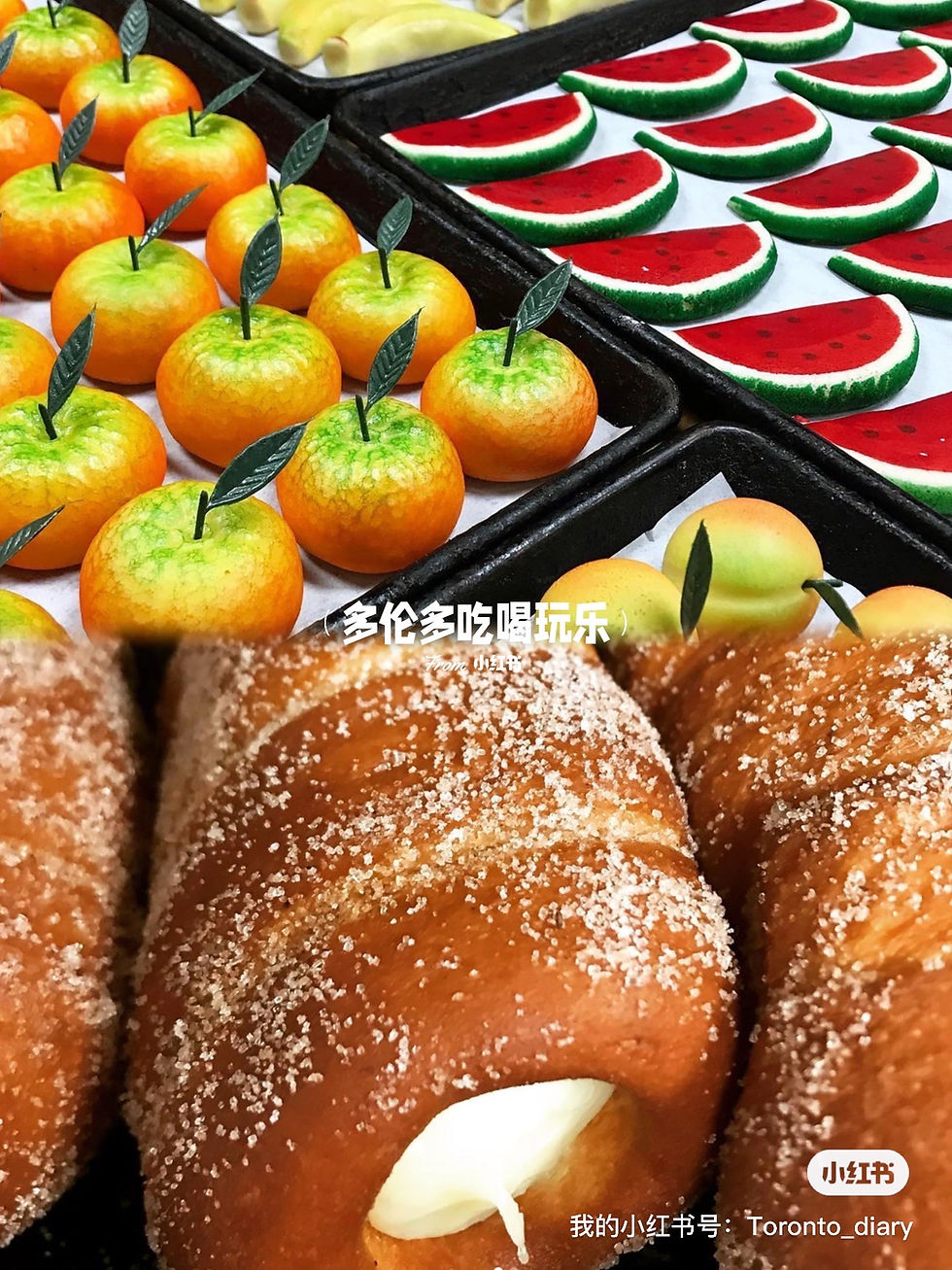 据说Bombolini是多伦多超有名的Sud Forno店里特别受欢迎的单品,Bomboloni 是一種包裹奶油或果凍的甜甜圈,類似來自奧地利格拉茨(Gratz)的 Berliner。轻薄蓬松的面团、顺滑香甜的奶油,再加上外面撒的糖,就像炸面包一样。