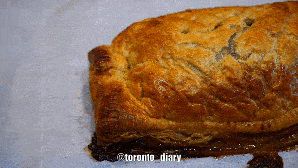 Beef Wellington色泽金黄,垂涎欲滴。