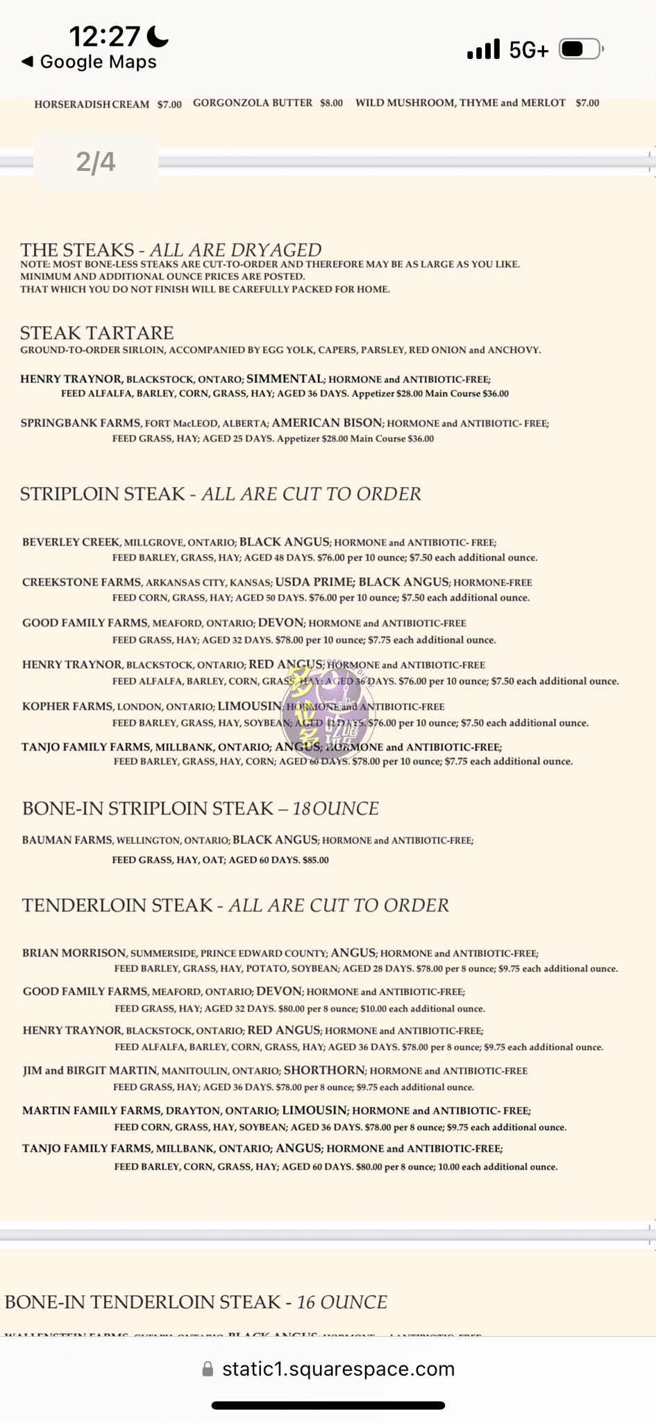 菜单信息非常透明,对牛排来源的重视程度,在多伦多牛排馆中并不常见。对于牛排爱好者来说,这更像是一张“牛排护照(steak passport)”,可以一次性体验多种风味取向的牛肉。